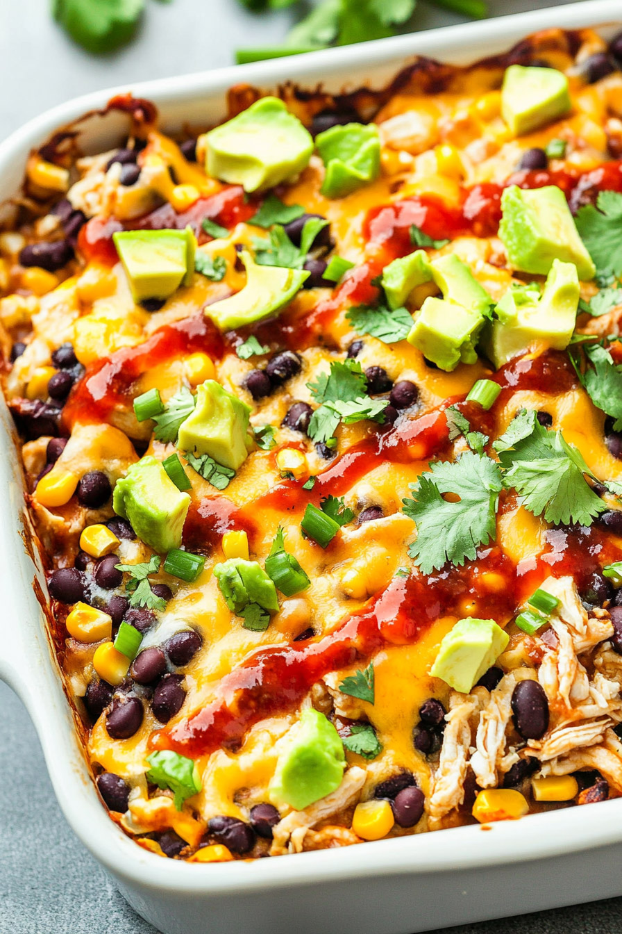 - Cool & Serve: Let the casserole cool for about 5–10 minutes before serving. Garnish with cilantro, green onion, avocado chunks, or salsa if desired.