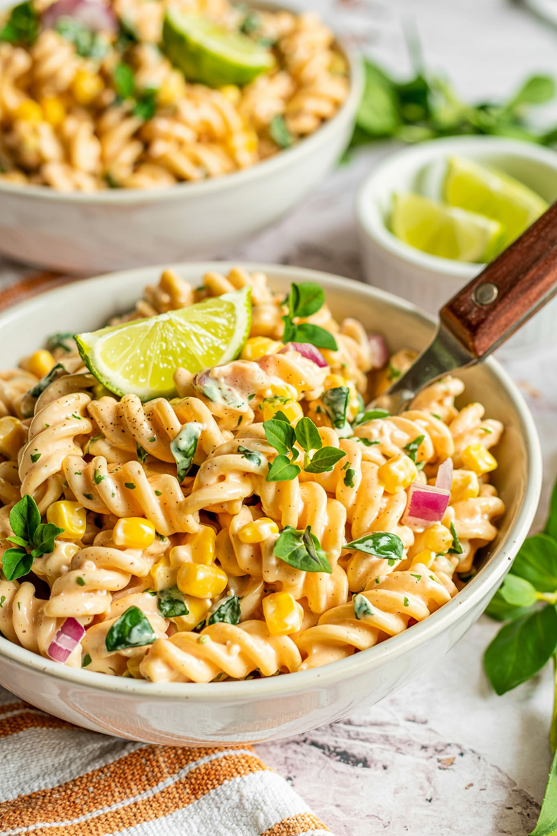 All the zesty, creamy flavors of Mexican street corn tossed into one hearty, protein-packed pasta salad! This super easy recipe is a total crowd-pleaser, perfect for summer BBQs, potlucks, or your weekly meal prep. It’s a full meal in a bowl that comes together in under 30 minutes.