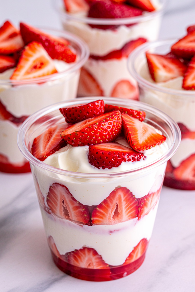 - Layer It Up: Grab some clear glasses or bowls. Spoon a layer of the cream mixture into the bottom, followed by a layer of chopped strawberries. Repeat until the glasses are full, finishing with a final dollop of cream on top.
